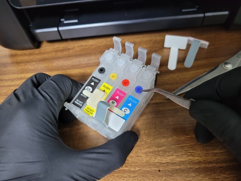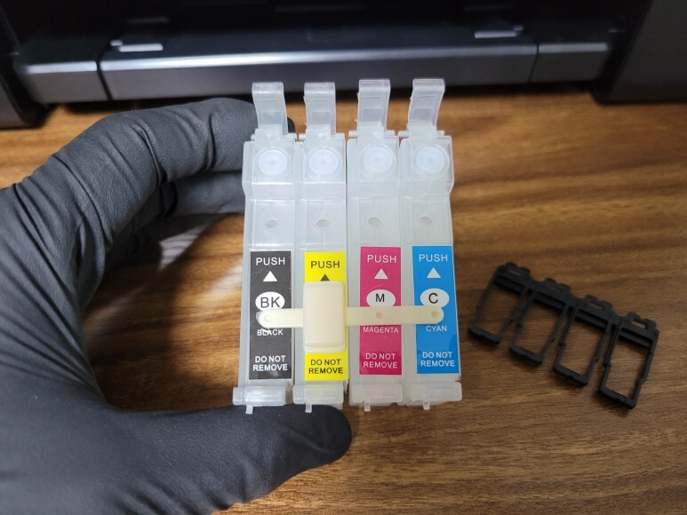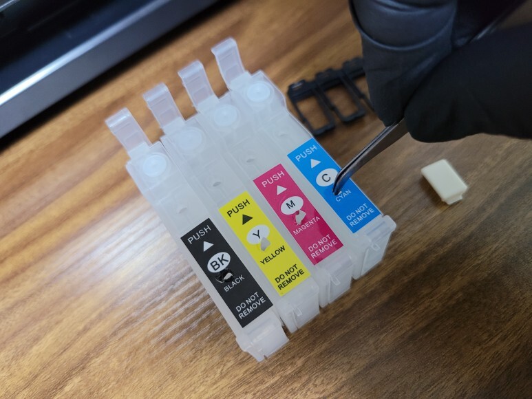 카트리지 없이 호스를 헤드 주입구에 직수 방식으로 설치해도 되자만, 일반적인 카트리지 이용 설치를 위해 엡손용 카트리지를 준비했습니다.