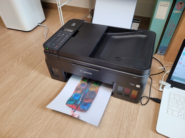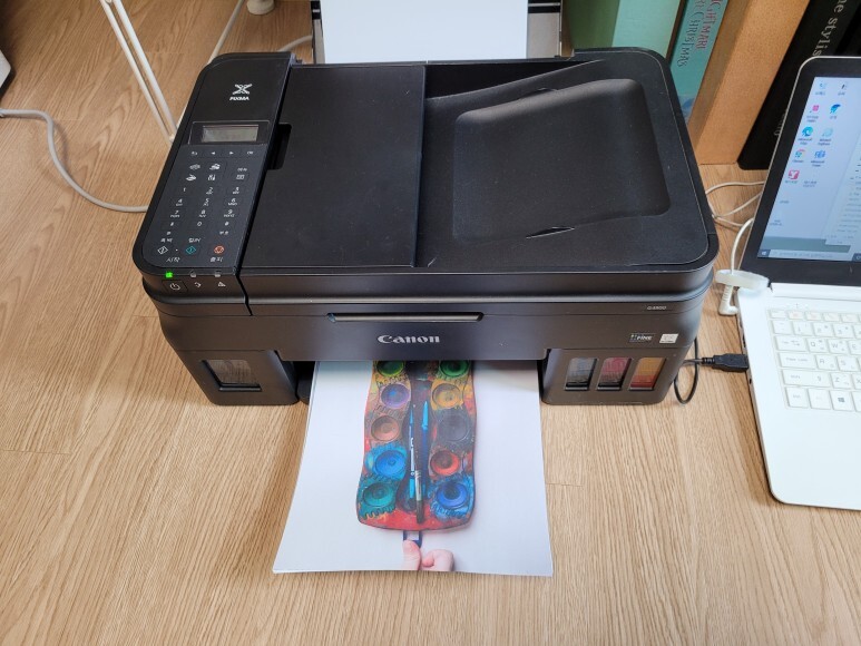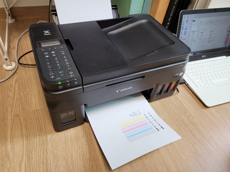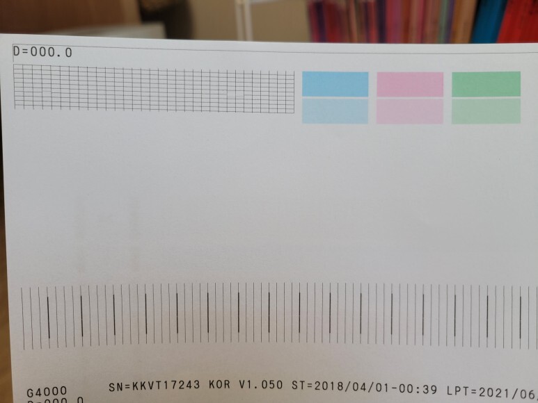마젠타 빨강과 옐로우 노랑이 전혀 출력되지 앟고 있었습니다. 700장정도 매우 적게 출력된 캐논 G시리즈 G4900 무한잉크 복합기입니다.