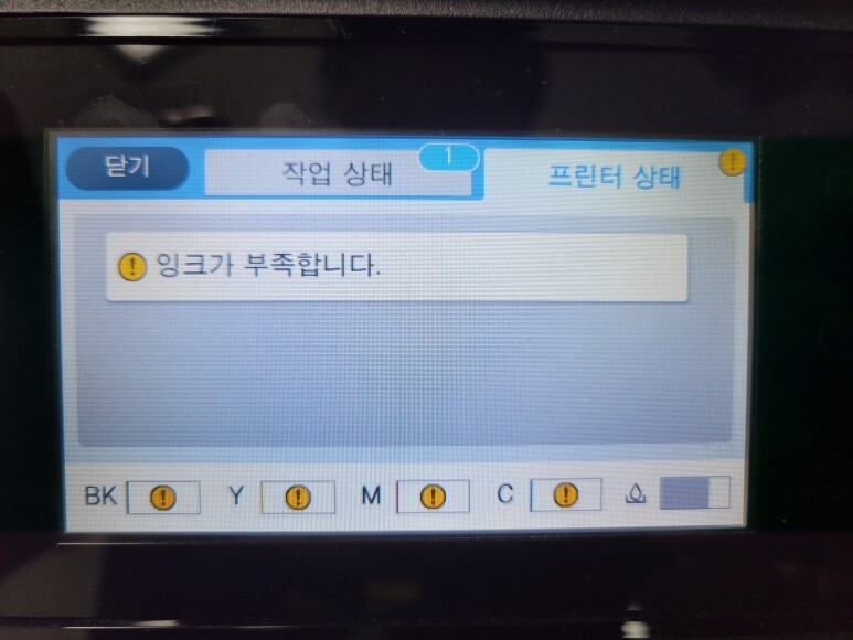 사무실에 도착하여 먼저 노즐상태를 점검하여 정상적인 노즐 상태를 확인하려 했지만 모두 잉크가 부족했습니다.