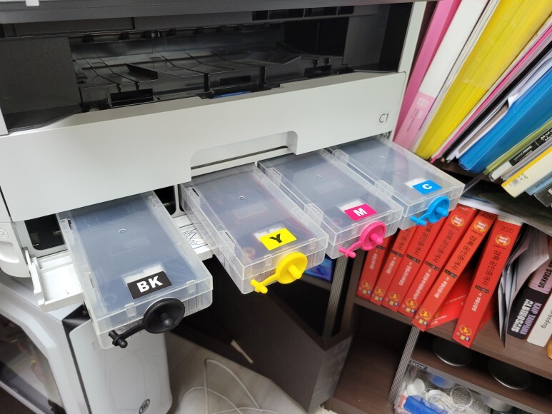 사무실에서 기존 사용하는 칼라 잉크젯 A4 고속 복합기, 엡손 WF-C5790을 사용하면서 카트리지 교체 비용이 너무 비싸 무한잉크 장착 출장요청하여 프리필 330ml 무한잉크 공급장치로 출장장착 설치 완료 했습니다.