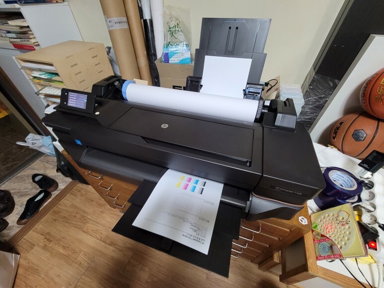 HP 디자인젯 T120 플로터 무한잉크 장비인데 오랜 미사용 및 장비 이동 등으로 문제가 되어 출장수리 요청하여 스케줄 잡아 이동 출장수리 완료했습니다.