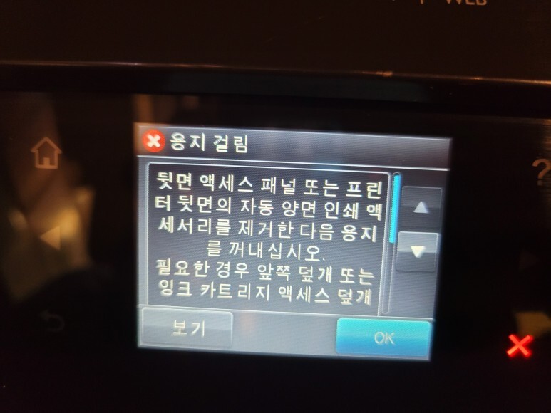 HP 오피스젯 7110 프린터에서 추가로 용지걸림 증상도 같이 있었습니다.