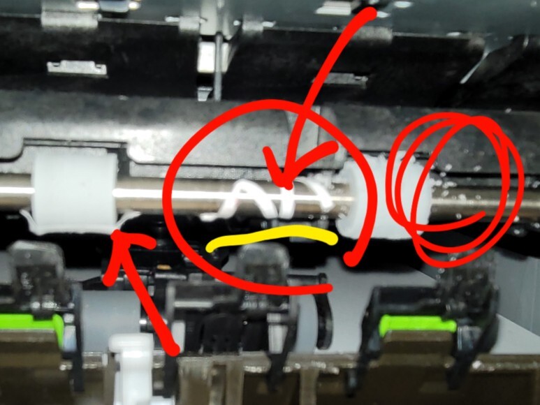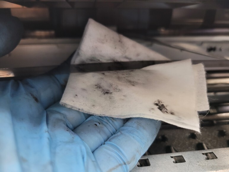 HP 오피스젯 7110 내부 캐리지 바에 심각하게 붙어 있는 많은 접작지를 제거 했습니다.