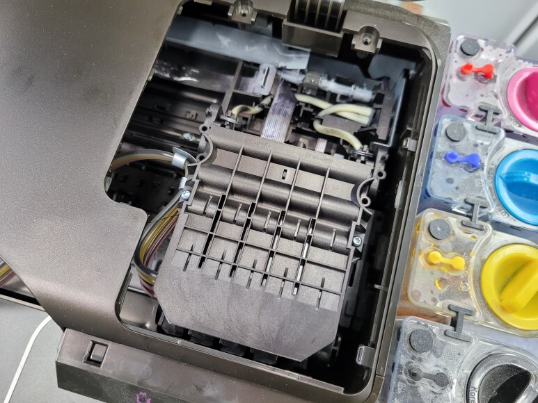 심각하게 헤드 챔버가 터져 잉크가 매우 많이 오여되어 있습니다.