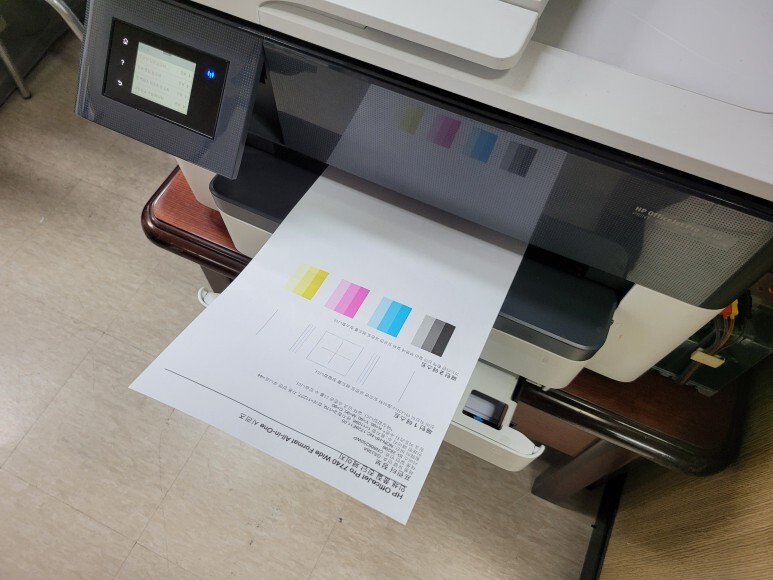 서울시 송파구 삼정동 소재 건축관련 사무실에서 사용하는 HP 7740 무한잉크 A3 팩스복합기 제품으로 헤드 노즐이 막혀 출력이 매우 불량하여 수리 요청, 스케줄 잡아 공급 호스 세정 및 헤드 노즐 세척 등등 출장수리 완료했습니다.