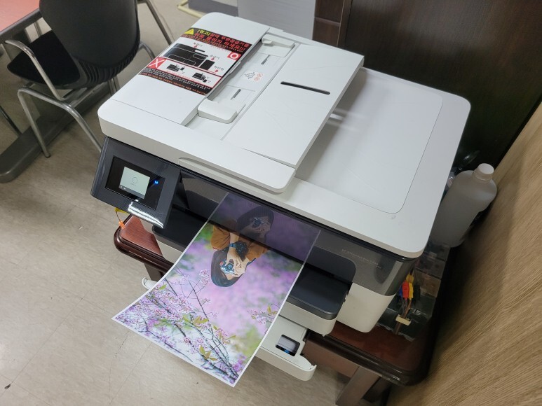 풀배경 출력하여 잉크를 뽑아냈습니다.