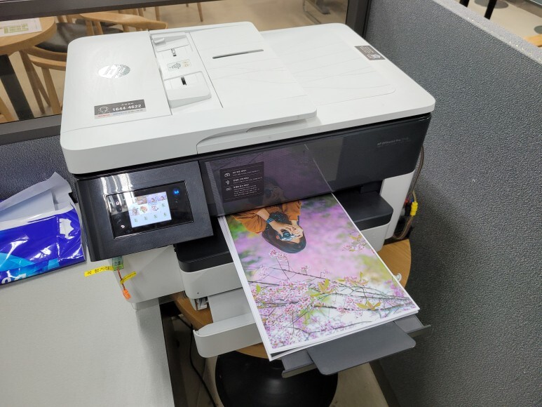 경기도 용인시 기흥구 소재 분양사무실에서 HP 7740 무한잉크 A4 A3 팩스복합기, 칩없이 구동하는 No Chip 장비 임대 설치했습니다. 1년 약정, 무제한 출력, CMS 자동계좌이체 계약 설치완료 했습니다.