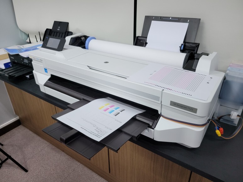 HP 디자인젯 T120 T125 T130 T520 T525 T530 플로터는 건축/건설현장에 도면출력용으로 많이 설치되지만 출력POP 및 미술학원 , 학교, 의상패턴 출력용으로 가장 많이 출고되는 모델입니다.