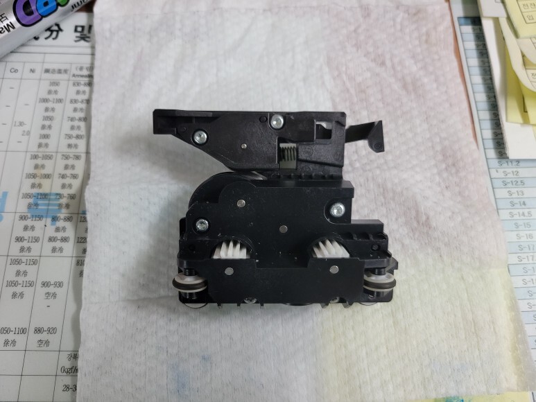 HP T120, T125(T130) T520, T525(T530) 용지자르기가 안 되는 경우, 칼날 내부에 톱니 기어가 크랙, 깨져서 용지가 걸리고, 자르기가 안되는 경우가 발생합니다. 칼날 불량 하나로 인해 잦은 용지 걸림, 캐리지벨트 훼손 및 벨트 도르레 탈락, 헤드 불량 등의 문제를 일으킬 수 있어 초기에 수리 및 교체를 해야 합니다.