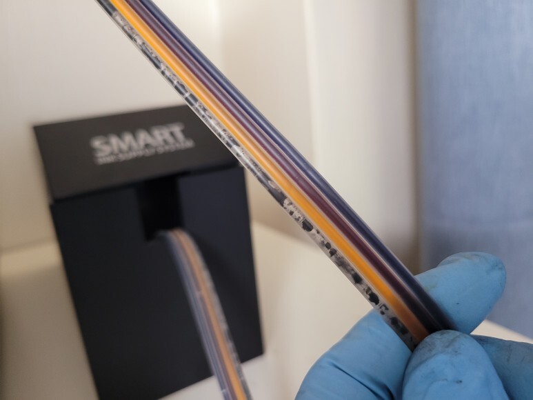 No Chip으로 전환한 기업형 무한잉크 HP 7740 복합기였습니다. 검정색 호스에 잉크가 빠지고 경화되어 막혀 잉크가 전혀 공급이 안되고 있었습니다. 호스를 절단하여 세정액을 주입해 세척 후 잉크 퀵차단밸브를 장착 공급기와 연결했습니다.