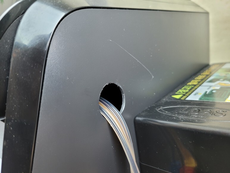 하우징 오른쪽을 타공하여 공급선을 밖으로 빼냈습니다.