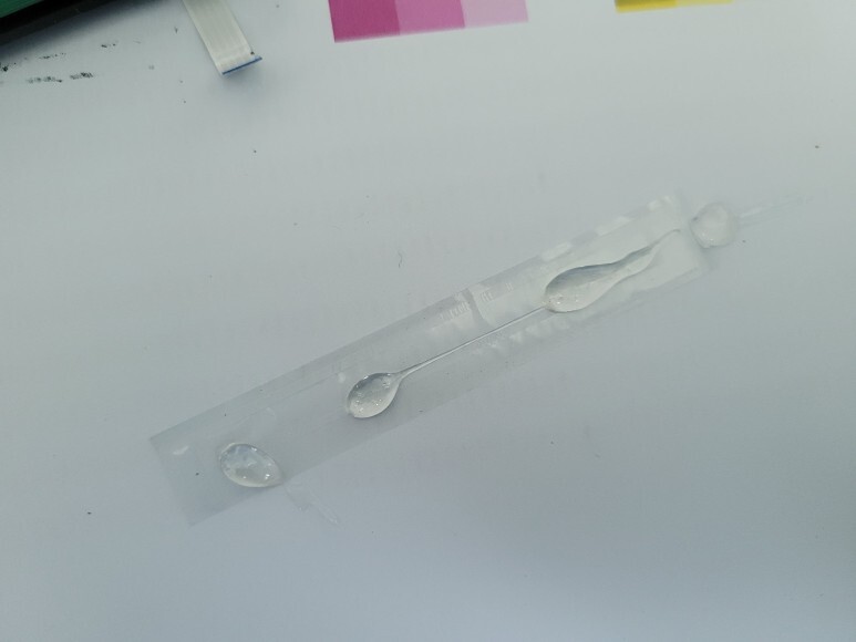 잉크 공급선 내부의 잉크가 경화되어 단단히 굳어 전혀 잉크가 공급되지 않고 있었습니다.