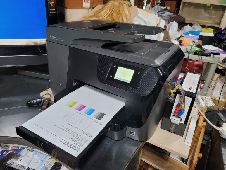 카트리지 문제로 HP 8710 팩스복합기 무한잉크가 멈춰 있었습니다.