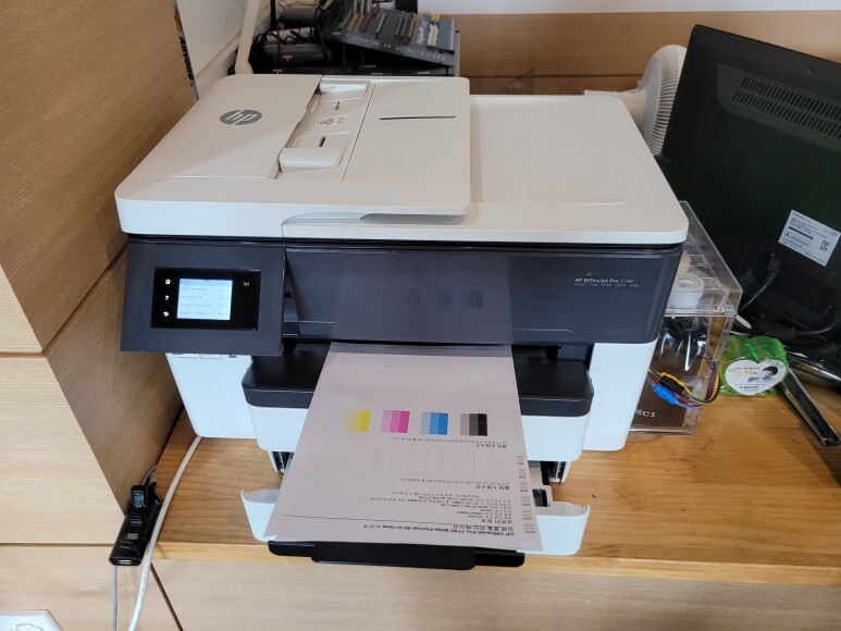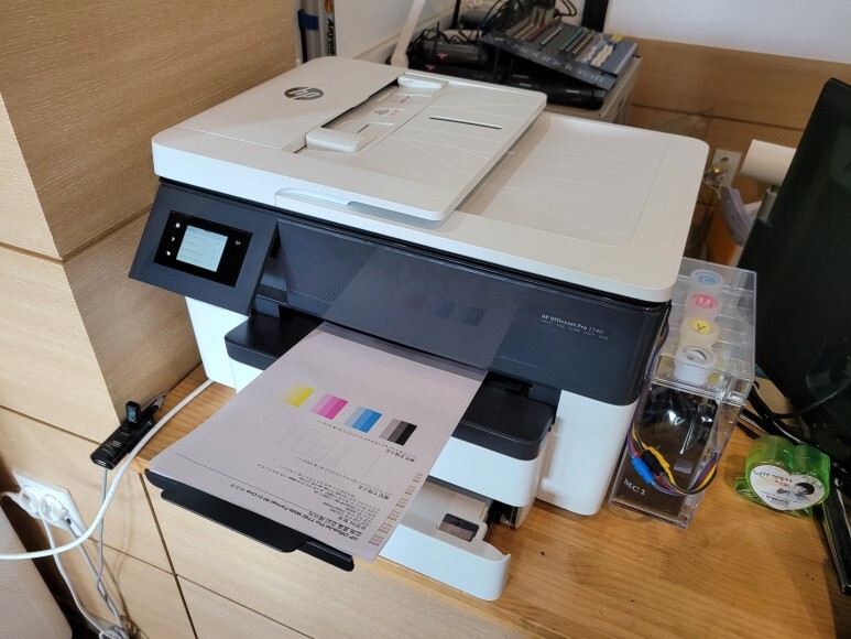 경기도 오산시 수목원로 소재 교회에서 사용하는 A3 팩스복합기, HP 7740 무한잉크로 잦은 카트리지 문제 및 소모품 시스템 문제로 멈춰버린 유한 4칩 HP 7740 무한잉크 장비를 기업형, B2B용 (보험사, 군부대, 학교, 학원, 부동산, 핸드폰매장, 교육사 등등)으로 사용되는 칩없이 구동하는 기업형 No Chip 무한잉크 장비로 전환 출장수리 요청으로 스케줄 맞춰 방문하여 수리 완료 했습니다.