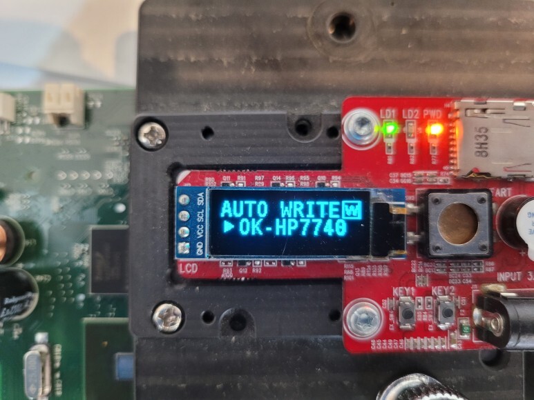 메인보드를 No Chip 펌을 하기 위해 지그에 물리고 전원을 연결했습니다. 메인보드 No Chip 펌 라이팅한 후에 메인보드 재장착 완료했습니다.