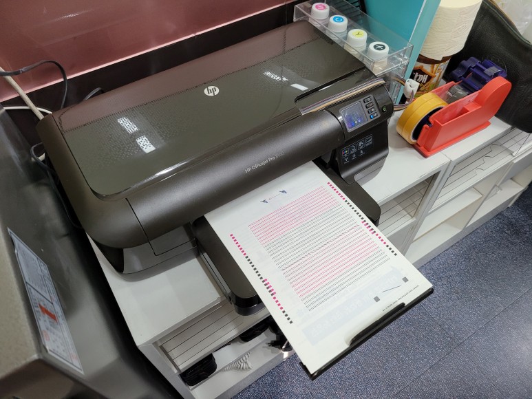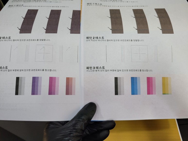 헤드 수리 후 정상적으로 인쇄품질 진단페이지가 출력되어 나왔습니다.