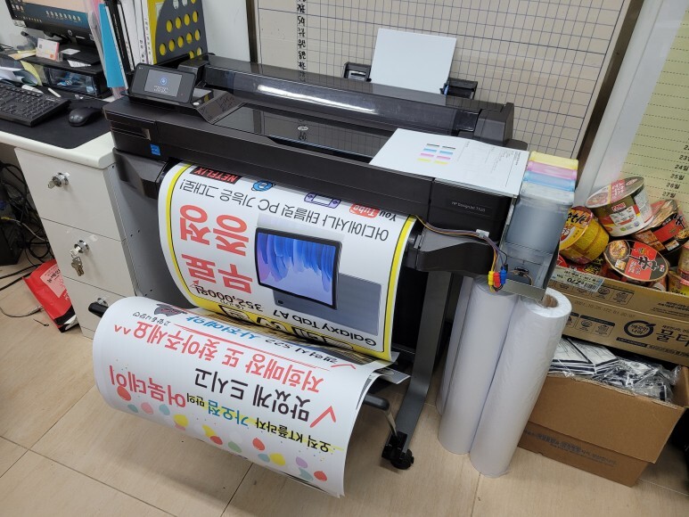 HP T520 24인치 A1 플로터로 ALL 안료잉크로 무한잉크 세팅해서 플로더 임대 설치했습니다.