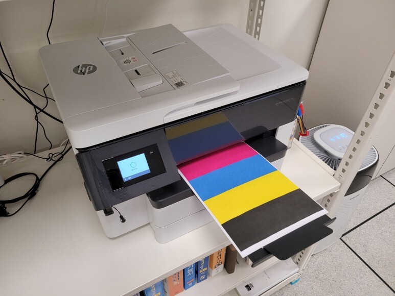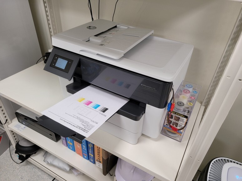 경기도 용인시 처인구 양지면 소재 연수원 사무실에서 사용하는 A3 팩스복합기, HP 7740 무한잉크로 잦은 카트리지 문제 및 소모품 시스템 문제로 멈춰버린 유한 4칩 HP 7740 무한잉크 장비를 기업형, B2B용 (보험사, 군부대, 학교, 학원, 부동산, 핸드폰매장, 교육사 등등)으로 사용되는 칩없이 구동하는 기업형 No Chip 무한잉크 장비로 전환 출장수리 요청으로 스케줄 맞춰 방문하여 수리 완료 했습니다.
