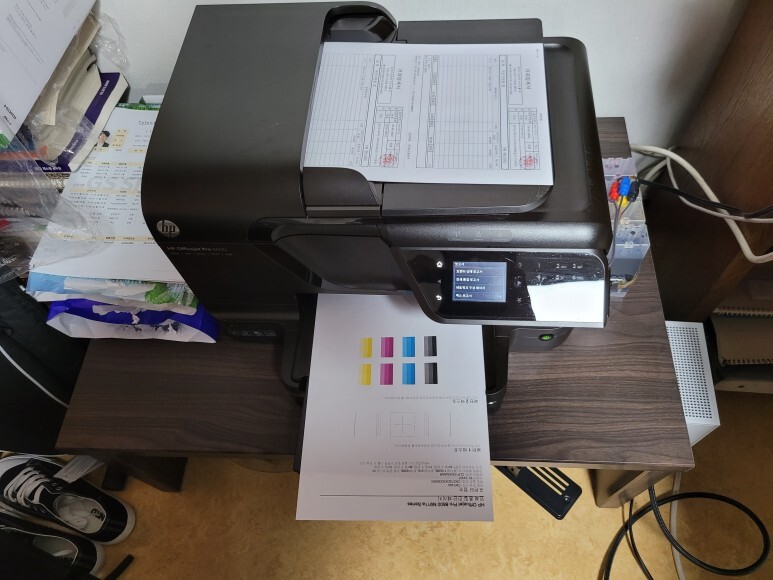 경기도 용인시 기흥구 보정동 소재 아파트에서 업무용으로 사용하는 HP 오피스젯 프로 8600 무한잉크 장착 A4 팩스복합기인데 잉크 카트리지 소모됨으로 출장 요청하여 이동했지만 전반적인 각종 문제가 있었습니다.