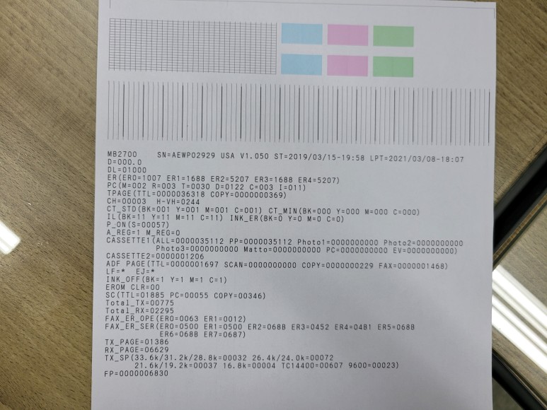 헤드 청소를 많이 하게 되면 캐논 맥시파이 MB2720 팩스복합기 모델에서 화면에 5B00 오류 발생시에 잉크 업소버가 모두 사용되었습니다. 라는 문제입니다. 서비스 툴의 패드리셋 프로그램으로 해결되는데 모든 캐논 제품에 확인되지 않았지만, 일부 정품 무한 G시리즈 및 캐논 맥사파이 MB2320 MB2390 MB4020 MB4090 MB5020 MB5090 ... 적용됩니다.