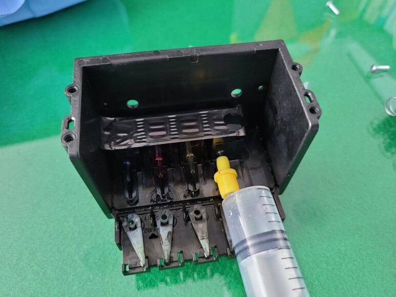 카트리지 석션하여 잉크를 채우고 카트리지 재장착했습니다.