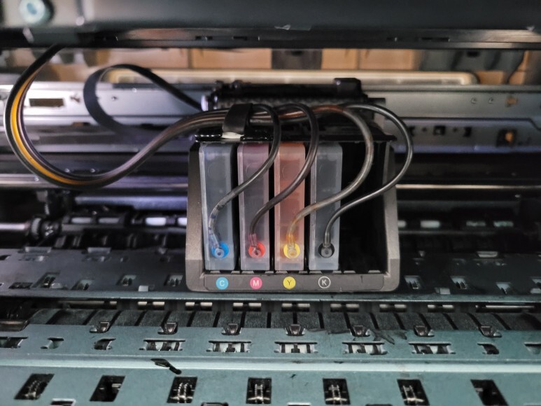 안양시 동안구 소재 사무실에서 사용하는 HP 7740 팩스복힙기 A3 무한잉크 인데 헤드 인식 불량 및 헤드 내부 챔버 터짐으로 심하게 오염되어 신규 헤드 교체 진행했습니다. 칩없이 구동되는 No Chip 변경 수리 진행된 장비로 간단하게 헤드 교체만 하면 되는 기업형 장비였습니다.