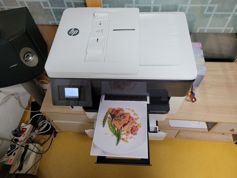 업무용으로 사용하는 HP 7740 팩스복합기 A3 무한잉크 프린터인데 프린터 액정 화면에 그린스크린에 12345 표시로 먹통이 되어 스케줄에 맞춰 방문, 수리완료했습니다. 칩없이 구동하는 No Chip 전환 및 무한잉크 장착도 같이 진행했습니다.