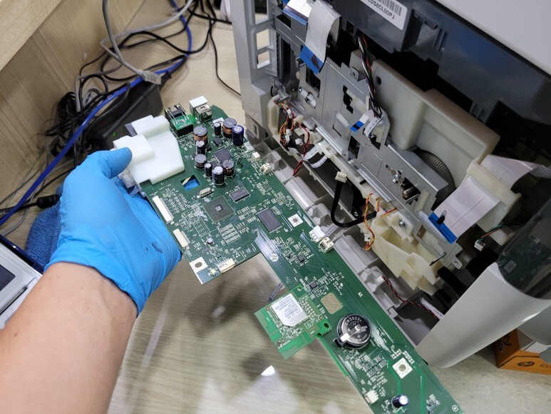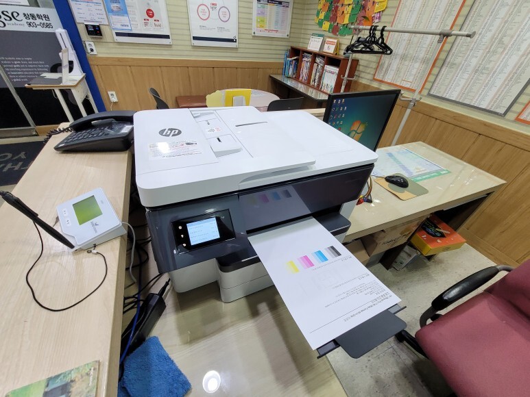 서울시 도봉구 창동 소재 학원에서 사용하는 A3 팩스복합기, HP 7740 무한잉크로 잦은 카트리지 문제 및 소모품 시스템 문제로 멈춰버린 유한 4칩 HP 7740 무한잉크 장비를 기업형, B2B용 (보험사, 군부대, 학교, 학원, 부동산, 핸드폰매장, 교육사 등등)으로 사용되는 칩없이 구동하는 기업형 No Chip 무한잉크 장비로 전환 출장수리 요청으로 스케줄 맞춰 방문하여 수리 완료 했습니다.