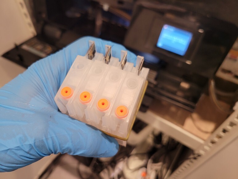 HP 오피스젯 8640 무한잉크 팩스복합기 헤드를 재조립하여 장착, 카트리지를 헤드에 재장착했습니다.