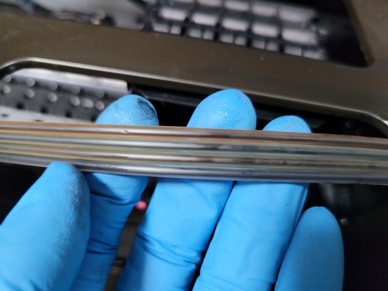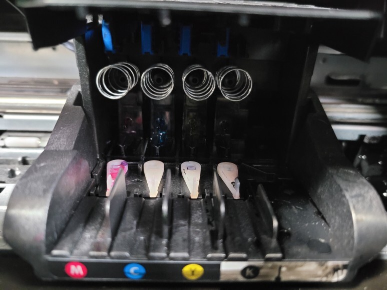 A3 팩스복합기 HP 7612 무한잉크프린터 헤드 내부를 보니 챔버터짐 현상이나 오염은 보이지 않았습니다.