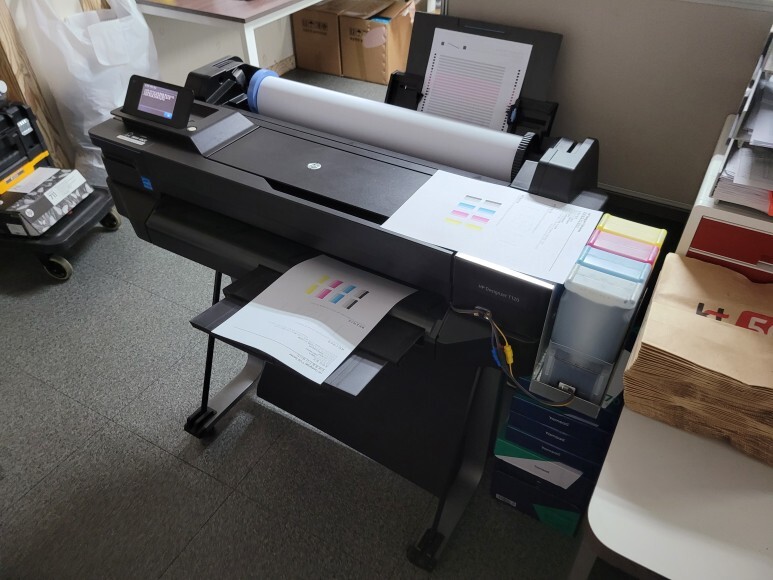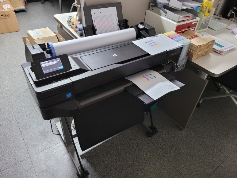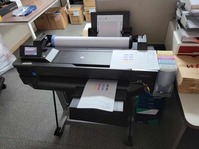 HP T120 24인치 대형프린터 A1 플로터 무한잉크 헤드 노즐 점검을 위해 진단페이지를 출력해 확인했습니다.