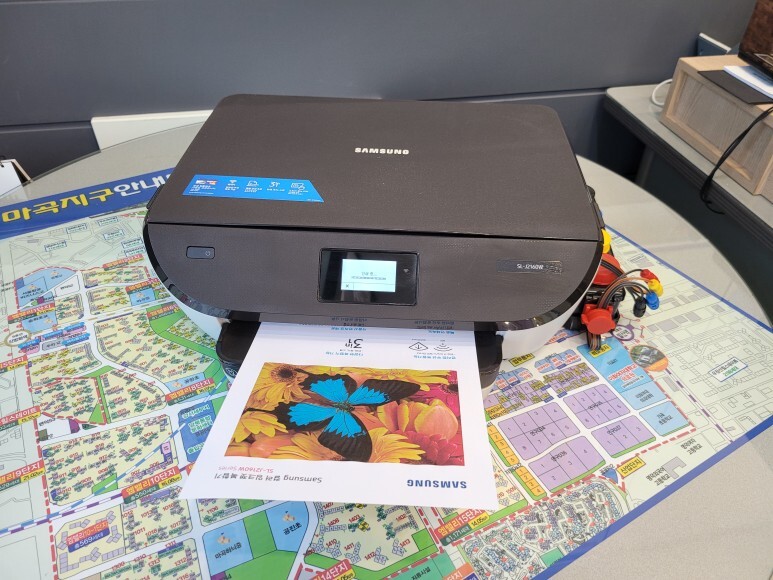 서울 강서구 마곡동 소재 부동산에서 사용하는 삼성 SL-J2160W 무한잉크인데 무한잉크 장치를 구매해서 유튜브를 보고 따라하다 안 되어서 수리 요청, 스케줄 잡아 이동, 출장수리 완료했습니다.