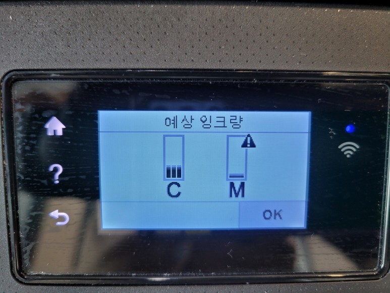 카트리지 인식확인을 위해 예상잉크량 화면을 먼저 확인했습니다.