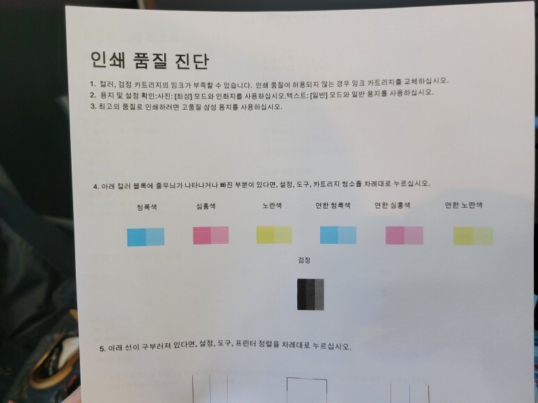 2) 매일 체크하지 않으면 노즐이 미세하게 막히면 헤드 청소를 해야 하는데 헤드청소시 이때, 잉크가 정말 많이 사용됩니다. 잉크 낭비까지 생각한다면 평소 출력해 체킹하는 게 좋습니다.(고지혈/동맥경화시 의료비가 듭니다)