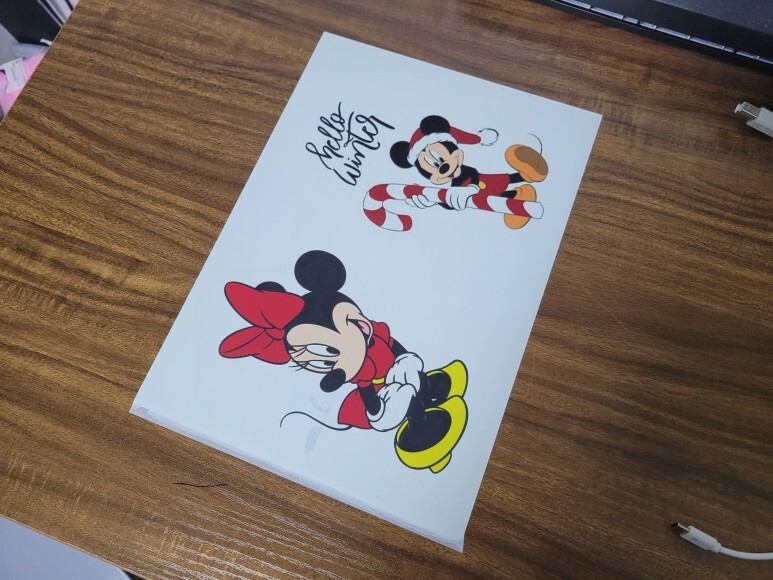 전분(Non GMO)과 설탕, 물엿 등을 만든 A4 식용용지(아이싱시트)를 개봉하여 동일 이미지를 출력했습니다. 일반용지보다 훨씬 진하고 선명하게 출력되어 나왔습니다. (**오른쪽 출력물이 식용용지 출력물)