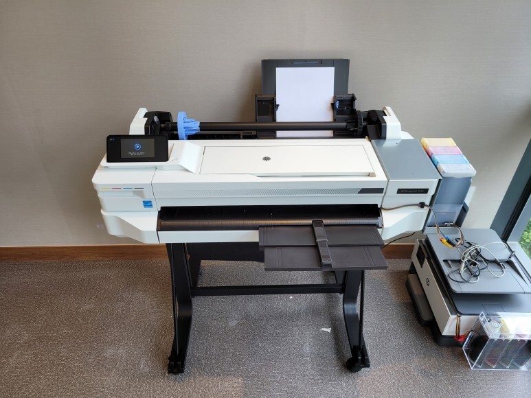 서울 영등포구 당산동 소재 신축 호텔 홍보실에 HP T525 24인치 플로터(대형프린터) 무한잉크 설치했습니다.