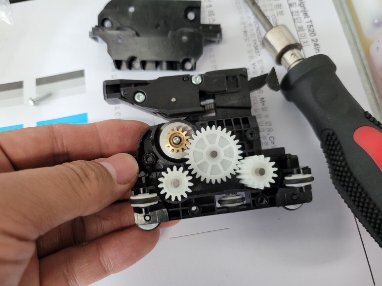 HP T520 24인치 대형프린터의 칼날, 커터의 내부 기어가 크랙되어 깨져 있었습니다.