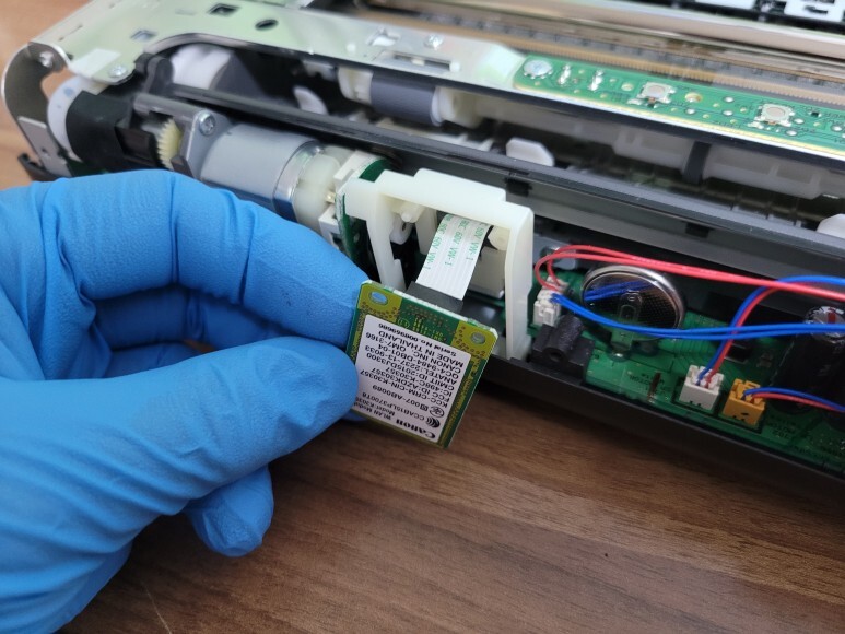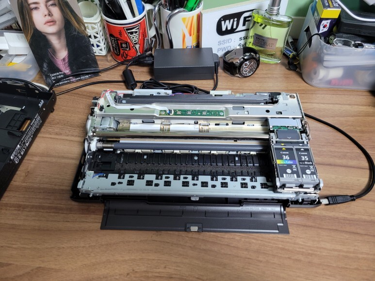 캐논 iP110 프린터를 군부대 및 보안시설 납품, 출고를 요청하여 무선 기능을 없애기 위해 물리적으로 무선 모듈을 제거하기 위해 하우징을 분해했습니다.