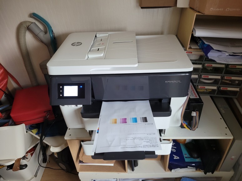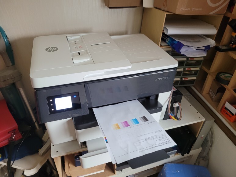 서울시 서초구 소재 건축설계 사무실에서 사용하는 A3 팩스복합기, HP 7740 무한잉크로 업그레이드 및 잦은 카트리지 문제 및 소모품 시스템 문제로 멈춰버린 유한 4칩 HP 7740 무한잉크 장비를 기업형, B2B용 (보험사, 군부대, 학교, 학원, 부동산, 핸드폰매장, 교육사 등등)으로 사용되는 칩없이 구동하는 기업형 No Chip 무한잉크 장비로 전환 출장수리 요청으로 스케줄 맞춰 방문하여 수리 완료 했습니다.