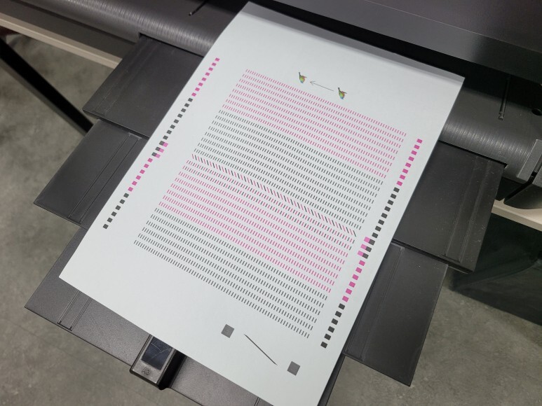 헤드 노즐 점검을 위해 진단페이지를 출력해 확인했습니다.