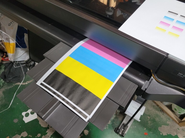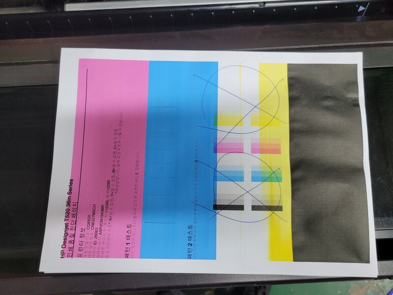 HP T520 36인치 플로터 대형프린터 헤드 노즐 점검을 위해 진단페이지를 출력해 확인했습니다.