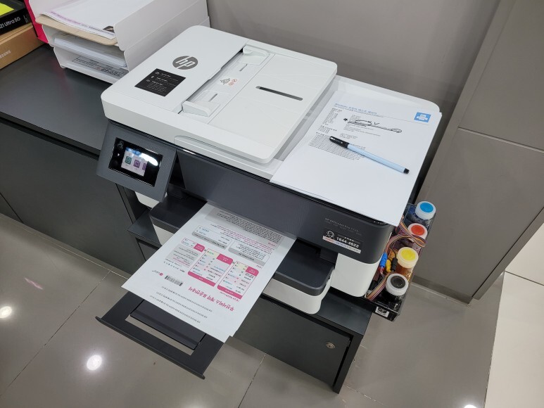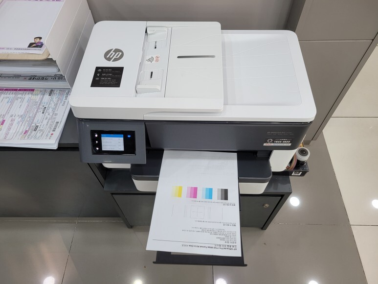 경기도 부천시 석천로 소재 LG U+ 모바일대리점 (핸드폰샵)에 HP 7720 무한잉크 A3 팩스복합기, 칩없이 구동하는 No Chip 장비 임대 설치했습니다.