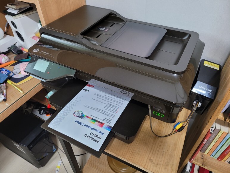 경기도 구리시 교문동 소재, 가정집에서 사용하는 A3 팩스복합기 HP 7612 무한잉크 프린터인데 잉크 카트리지 소모됨 문제로 출장수리 요청하여 스케줄 잡아 이동, 석션 및 OOBE 리셋 초기화 등등 완료했습니다.