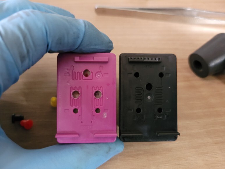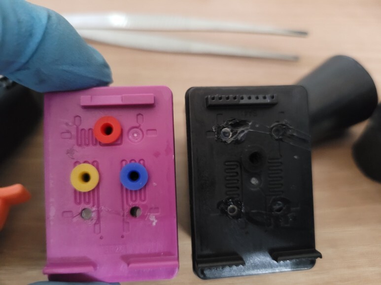 삼성 SL-1770FW 팩스복합기 카트리지 홀을 내고 고무 패킹을 삽입, 불필요 홀은 모두 단단히 막았습니다.