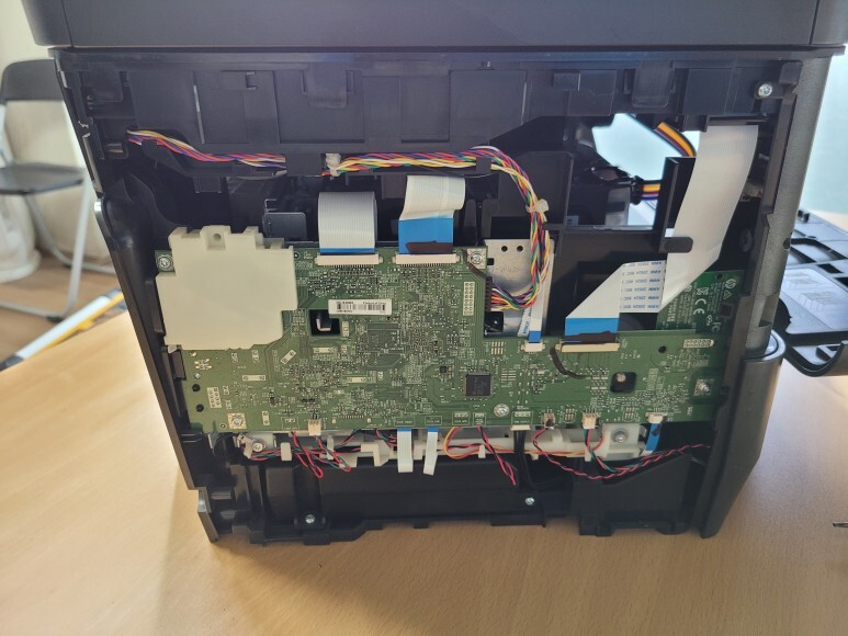 왼쪽 커버를 열었습니다. 메인보드에 연결된 케이블을 모두 제거하고 No Chip 펌 지그에 물렸습니다.