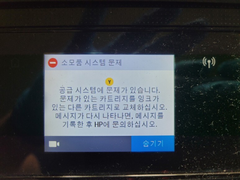 HP 8710 팩스복합기, Y 노랑 카트리지 문제, 멈춰 있었습니다.