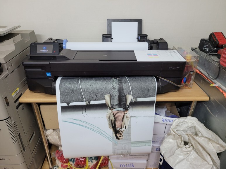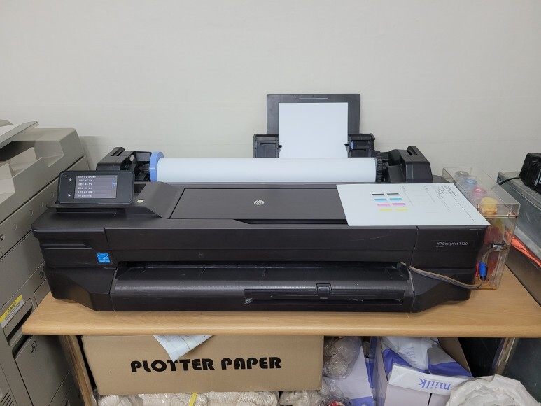 서울시 강남구 도곡동 소재 전기설비 관련 사무실에서 HP T120 24인치 플로터 대형프린터 무한잉크 사용중인데 프린트헤드 문제 수리 요청, 스케줄 잡아 이동하여 수리 완료했습니다.