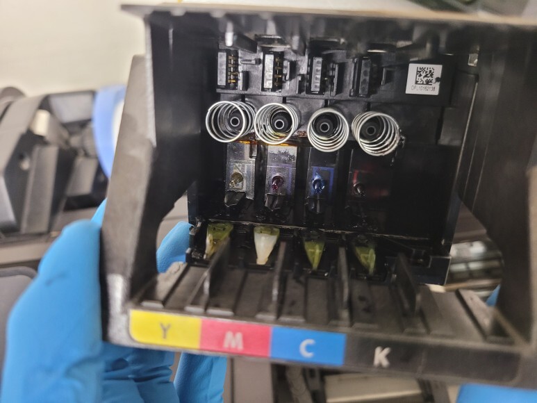 3) 미세한 노즐 막힘은 헤드 챔버 부분을 터지게 합니다. 사람도 뇌혈관이 막히면 터져 사망에 이르게 됩니다. 헤드도 노즐이 막히면 헤드가 터져 잉크가 흐르고 교체해야 하는 비용을 지불하거나 폐기해야 합니다. (중환자수술 또는 뇌출혈사망)
