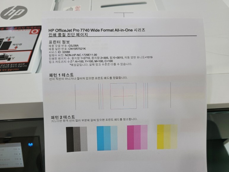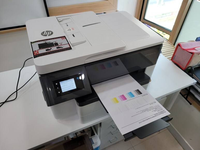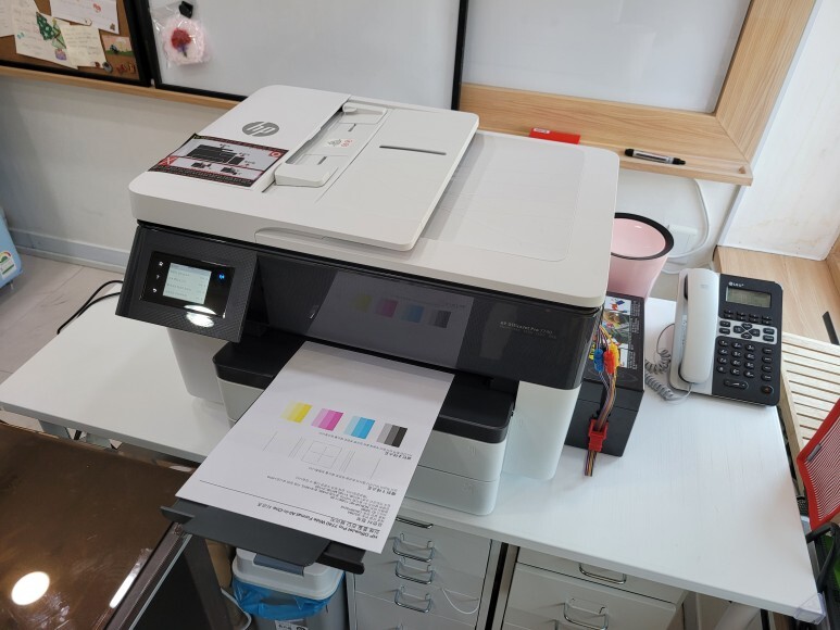 칩없이 구동하는 기업형 HP 오피스젯 7740 무한잉크 A3 팩스복합기 였습니다.