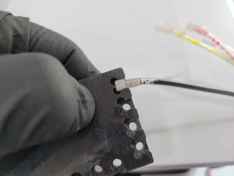 훼손된 부분을 잘라 버리고 새롭게 재단된 호스를 카트리지에 연결했습니다.